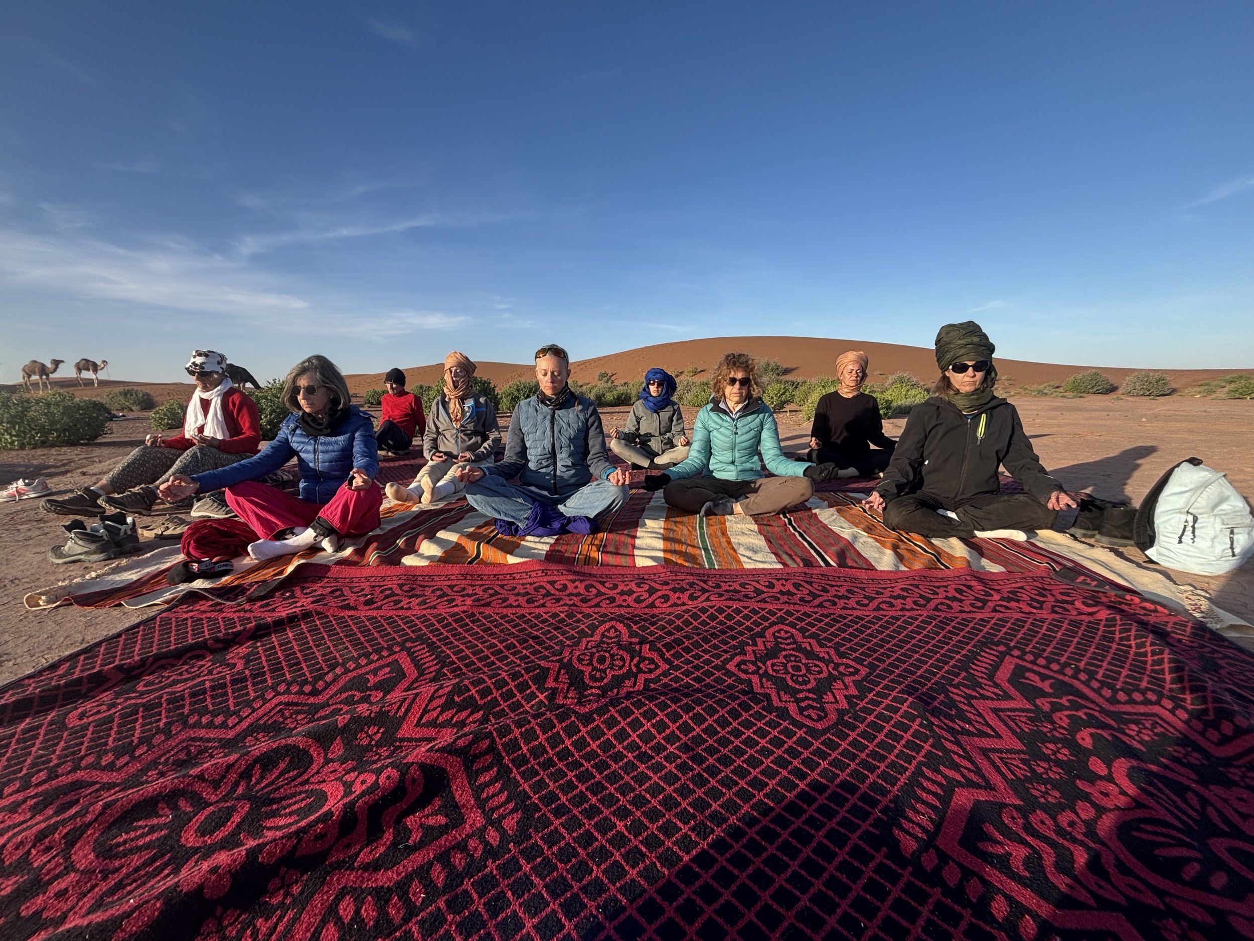 ven 30 oct. - Le silence intérieur : Excursion à Erg Che Gaga - Retour au campement fixe en 4x4 - Méditation le matin & Viniyoga le soir - Atelier carnet de voyage - Soirée de clôture autour du feu, chants - Nuit au campement fixe.